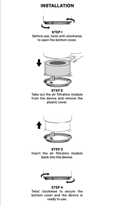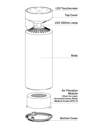 • Portable and Compact: Designed for easy portability, this cylindrical air purifier is perfect for use at home, in the office, or while traveling. Its lightweight construction and compact size make it easy to carry and set up anywhere.